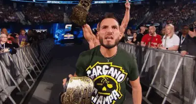 Montez Ford usou uma perna protética para atingir Johnny Gargano durante combate de mesas, escadas e cadeiras no WWE SmackDown. Confira.