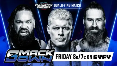 - Cody Rhodes vs. Jacob Fatu vs. Sami Zayn – Men’s Elimination Chamber – Qualifying Match;